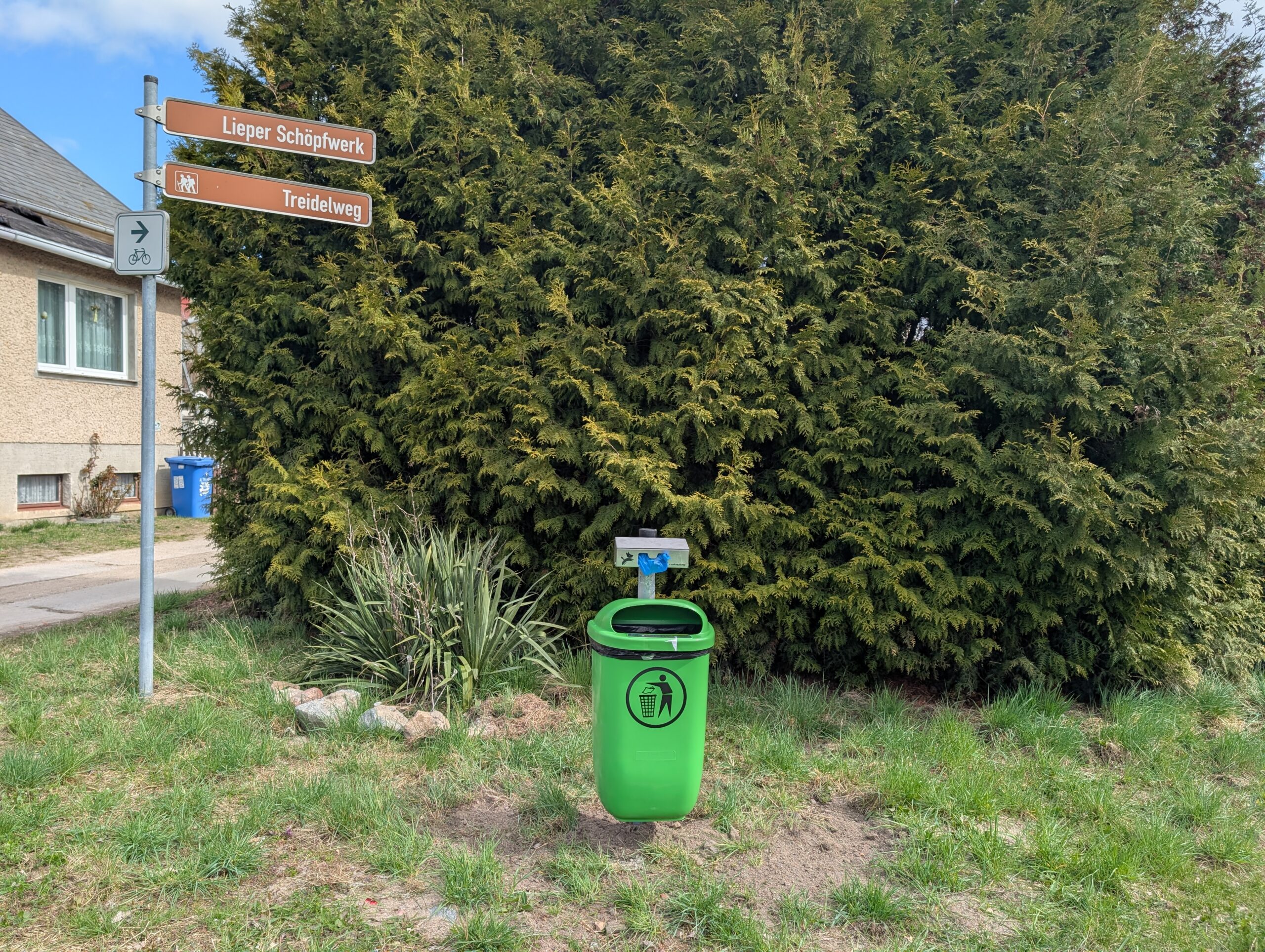 Endlich gibt es einen Hundekotbeutelspender samt Mülleimer zur Entsorgung der Hinterlassenschaften unserer Vierbeiner. Zu finden ist er an der Ecke Fischerstraße/Wiesenweg und alle Hundebesitzer sind dringend gebeten, dieses neue Angebot auch zu nutzen.